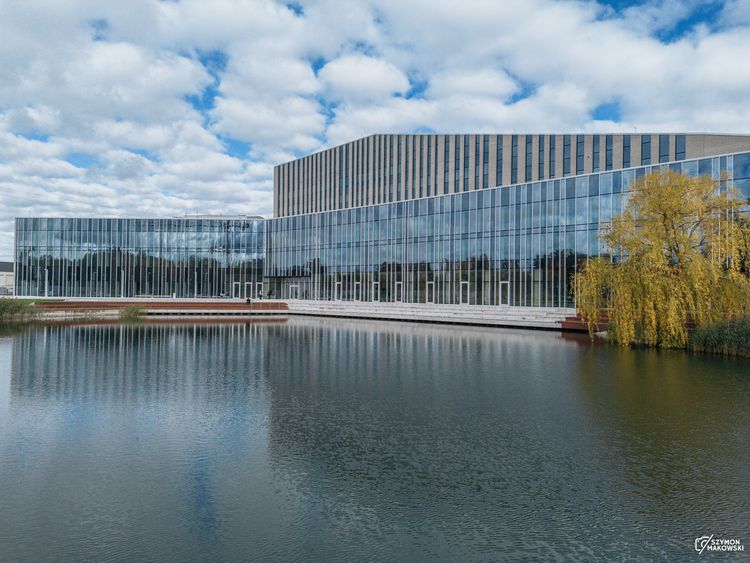 - Osiem kondygnacji, 700 pomieszczeń, cztery sale koncertowe, w tym największa, symfoniczna, z widownią na 420 osób, a także kameralna, operowa i organowa. Obiekt powstał na terenach postindustrialnych nieużytków dawnej cegielni i podniósł jakość urbanistyczną najbliższych okolic. Jego bryła niejako wynurza się z sąsiadującego oczka wodnego, a dynamikę doskonale podkreślają konsekwentnie poprowadzone wertykalne podziały elewacji. Masywne rozmiary całości są skutecznie rekompensowane ciekawie, choć oszczędnie, rozrzeźbieniem bryły i jej linią, która nie tylko załamuje gmach, ale też – obniżając się – równocześnie zwęża go w kształt klina. Warto wspomnieć, że wielkoskalową szklaną elewację profesjonalnie zabezpieczono przed kolizjami z ptakami, stosując specjalną siatkę umieszczonych na szybach kropek. Ciekawostką jest dobór szyb o odcieniach naprzemiennie jaśniejszych i ciemniejszych – nasuwają skojarzenia z klawiaturą fortepianu. Wiele walorów nowej siedziby Akademii Muzycznej jest jednak niewidocznych. To przede wszystkim doskonała akustyka osiągnięta dzięki pełnej izolacji dźwiękowej sal koncertowych i sal prób. To także nowoczesny system oszczędności energii, wykorzystujący ciepło ziemi i naturalną wentylację. Po Operze Nova to kolejny w Bydgoszczy obiekt związany z muzyką, który ma szansę stać się ikoną miasta – tak o kampusie, który jest jednym z nominowanych pisze Piotr Sarzyński.