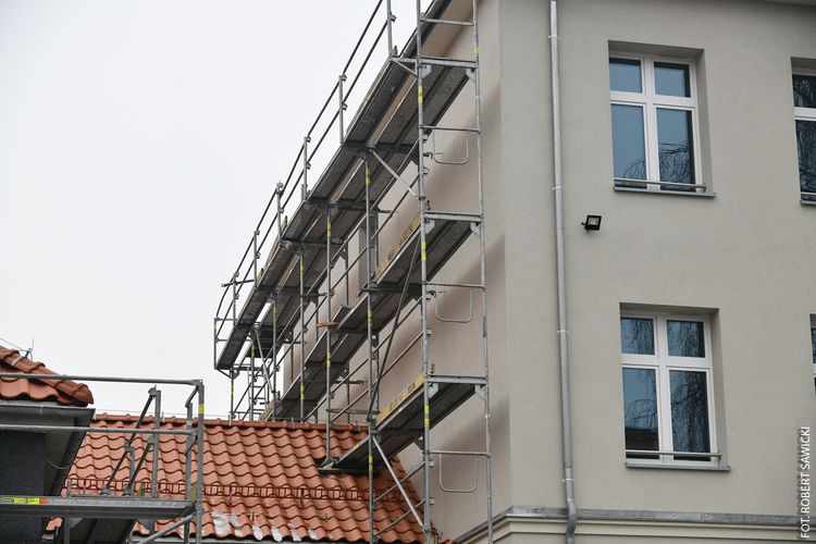 Z początkiem roku zakończyły się prace elewacyjne i dachowe i rozpoczęły roboty przy dociepleniu ścian fundamentowych. Rozpoczęły się natomiast rozbiórki w ostatnim module – drugiej części szkoły. Zaawansowanie rzeczowe wynosi ok. 80 %. Zakończenie planowane jest wiosną.