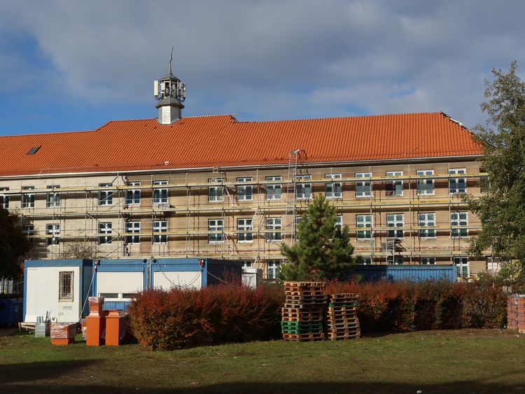 Firma Mega zakończyła już prace dekarskie nad głównym budynkiem i laboratorium. Aktualnie trwa łacenie dachu hali gimnastycznej. Wewnątrz szkoły prowadzone są prace instalacyjne i wykończeniowe. W pomieszczeniach układane są płytki, wykonywane są gładzie oraz zabudowy ze ścianek laminowanych.