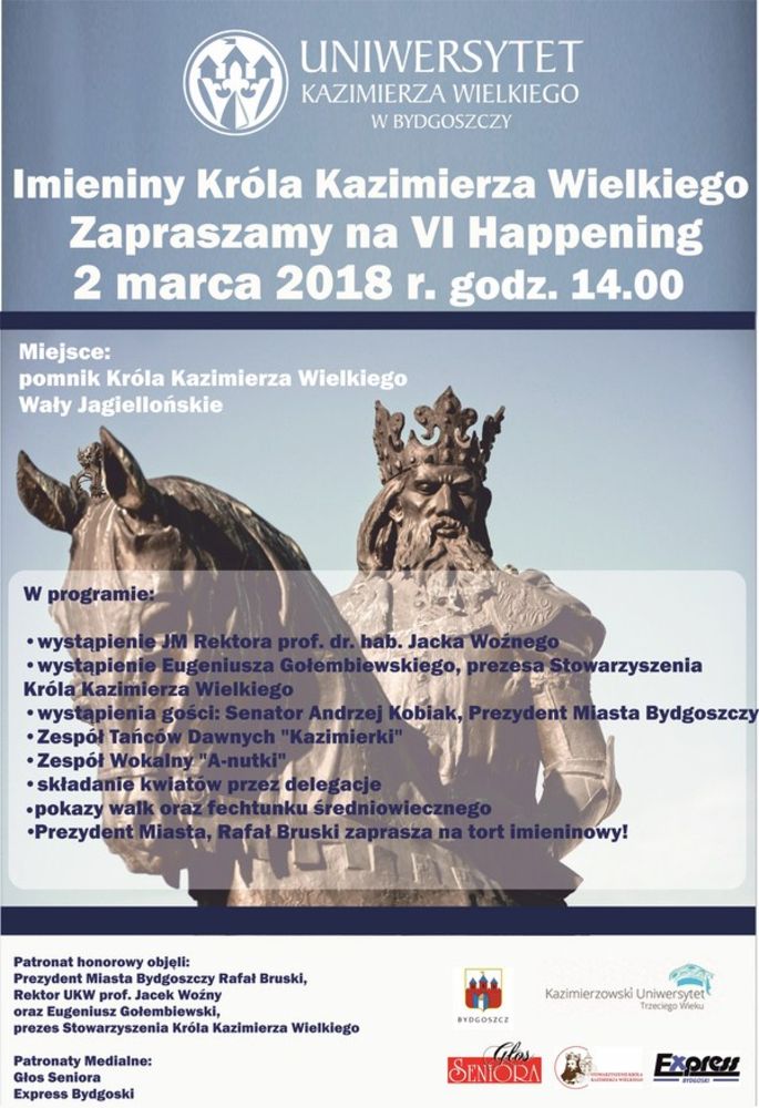Happening odbędzie się 2 marca o godz. 14.00 pod pomnikiem monarchy przy ul. Pod Blankami. Patronat nad imprezą objęli prezydent miasta, Rafał Bruski oraz JM rektor UKW, prof. Jacek Woźny.