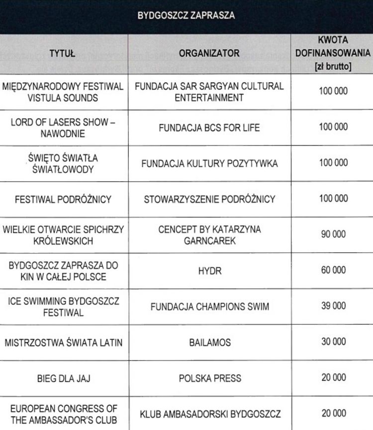 W ramach konkursu „Bydgoszcz Zaprasza” wpłynęło 35 wniosków, z których 10 otrzyma dofinansowanie: