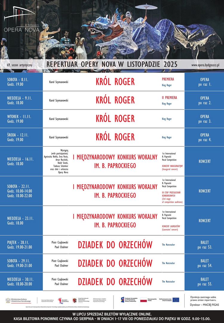 Zbliżające się stulecie prapremiery „Króla Rogera” skłania do upamiętnienia rocznicy obecności tej współczesnej opery na scenach całego świata. Muzyka Karola Szymanowskiego łączy w sobie cechy opery, dramatu muzycznego i misterium (oratorium). Dzieło Szymanowskiego podbiło najsłynniejsze sceny i pozostaje najbardziej znanym polskim utworem operowym. Wyzwanie zmierzenia się z materią muzyczną oraz tematyką przedstawioną w libretcie Jarosława Iwaszkiewicza skłaniają twórców światowego formatu do realizacji dzieła. W historii bydgoskiej Opery „Król Roger” wystawiony zostanie po raz pierwszy, w reżyserii i choreografii Roberta Bondary. Nowa bydgoska inscenizacja w reżyserii i choreografii Roberta Bondary pokaże dramat władcy, który – mając wszystko – staje wobec najtrudniejszego pytania: Kim naprawdę jestem i dokąd zmierzam? Historia tytułowego króla Rogera to nie tylko opowieść o władzy i religii, ale przede wszystkim o człowieku uwięzionym w ramach narzuconych przez świat różnych zależności oraz o sile, która te ramy burzy. W życie bohatera wkracza Pasterz – wielowymiarowa postać, która nie tylko wstrząśnie królestwem, lecz stanie się też zwierciadłem wewnętrznych pragnień i lęków Rogera. Sceniczna wizja Roberta Bondary połączy monumentalność z intymnością, tworząc spektakl, który rozgrywa się jednocześnie na płaszczyźnie przemian społeczno-politycznych, jak i we wnętrzu człowieka. To podróż przez porządek i chaos, rozpad i odrodzenie – aż po pytanie, czy prawdziwa wolność jest możliwa. I chociaż akcja „Króla Rogera” rozgrywa się gdzieś na szczytach władzy, to jak podkreśla Robert Bondara – każdy z nas w postaci tytułowego bohatera może odnaleźć własne pragnienia i niepokoje. „Król Roger” – opera, która porusza, wstrząsa i zostaje w pamięci już w listopadzie w Operze Nova. Premiera 8 listopada, pierwsze popremierowe spektakle: 9, 11 i 12 listopada 2025 r.