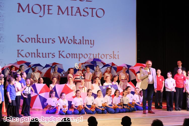 Wyjątkowy Koncert Laureatów Konkursu Wokalnego i Kompozytorskiego z okazji 680. urodzin Miasta Bydgoszczy pt. „Bydgoszcz - moje miasto” odbył się 24 kwietnia (piątek) w Pałacu Młodzieży. W programie widowiska znalazły się prezentacje laureatów konkursu wokalnego i kompozytorskiego z bydgoskich szkół i placówek oświatowych, a także występy zespołów tanecznych z Pałacu Młodzieży.