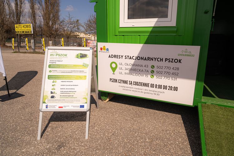 W sobotę, 11 kwietnia br. M-PSZOKI zlokalizowane będą przy Szkole Podstawowej nr 9 w Fordonie (ul. gen. T. Bora-Komorowskiego 2) i przy Klubie Sportowym „Chemik” (ul. Glinki 79). Kolejne lokalizacje można sprawdzić w harmonogramie dostępnym na www.czystabydgoszcz.pl. Operatorem mobilnych punktów jest Międzygminny Kompleks Unieszkodliwiania Odpadów ProNatura Sp. z o.o.