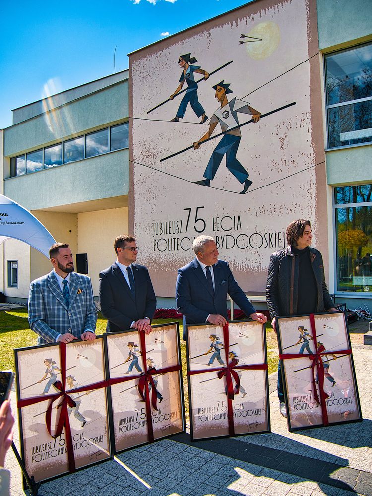 Politechnika Bydgoska świętuje w tym roku swoje 75 „urodziny”. Historia Politechniki Bydgoskiej – wówczas Wieczorowej Szkoły Inżynierskiej – rozpoczęła się wraz z powstaniem Wydziału Inżynierii Mechanicznej, w roku 1951. Wydarzenie to stanowiło także początek szkolnictwa wyższego w Bydgoszczy. Przez 75 lat istnienia uczelni, Wydział nieprzerwanie funkcjonuje w jej strukturach. Obecnie realizuje szereg projektów badawczych i kształci studentów na takich kierunkach jak mechanika i budowa maszyn, mechatronika czy inżynieria w medycynie. Jednym z akcentów tegorocznego jubileuszu jest nowy mural przygotowany na podstawie plakatu Andrzeja Pągowskiego. W uroczystym odsłonięciu uczestniczył wybitny artysta i grafik.