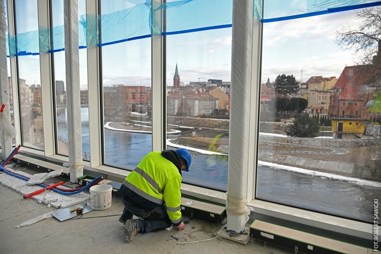 Bardzo niskie temperatury wymagały zabezpieczenia prac instalacyjnych oraz dostosowania harmonogramu robót zewnętrznych przy szklanej fasadzie. Dodatkowym wyzwaniem była koordynacja prac wykończeniowych z intensywnym montażem instalacji technicznych.