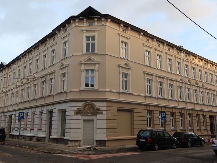 Budynek powstał około 1900 roku. Wzniesiono go na planie zbliżonym do litery L ze ściętym narożnikiem. Chociaż funkcjonalnie to jedna kamienica, poszczególne jej części przynależą do dwóch adresów: ul. Łokietka 23 oraz J. Długosza 16. Fasady rozciągniętych wzdłuż obu ulic skrzydeł budynku zdobią między innymi naczółki, gzymsy i płyciny. Część parterową podkreśla boniowanie. W oba skrzydła wkomponowano smukłe wejścia oraz przejazdy bramne na obszerne podwórko. W ściętym narożniku na parterze znajduje się lokal usługowy. W trakcie prac odsłonięto nad wejściem napis „Rzeźnictwo” przypominający o funkcjonującym w okresie międzywojennym sklepie mięsnym. Reklama poddawana jest zabiegom konserwatorskim. Podobnie jak w innych odrestaurowanych budynkach będzie świadkiem historii.