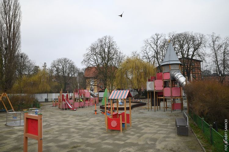 Jesienią rozpoczęliśmy kompleksową modernizację popularnego placu zabaw przy ul. Mennica. Roboty obejmują wymianę nawierzchni na bezpieczną, wylewaną. Wzór nawiązywać ma do motywu fal wody, a ponieważ Wyspa Młyńska jest zabytkiem, kolory będą stonowane, harmonijnie wpisujące się w otaczającą przestrzeń. Odnawiane są też istniejące urządzenia zabawowe: m.in. kultowe czerwone krzesło, ławki oraz inne zabawki i tablice. Dodatkowym zamówieniem objęliśmy również wymianę karuzeli. Odnowiony plac udostępnimy do użytku tej wiosny. Prace kosztują ponad 650 tysięcy złotych.