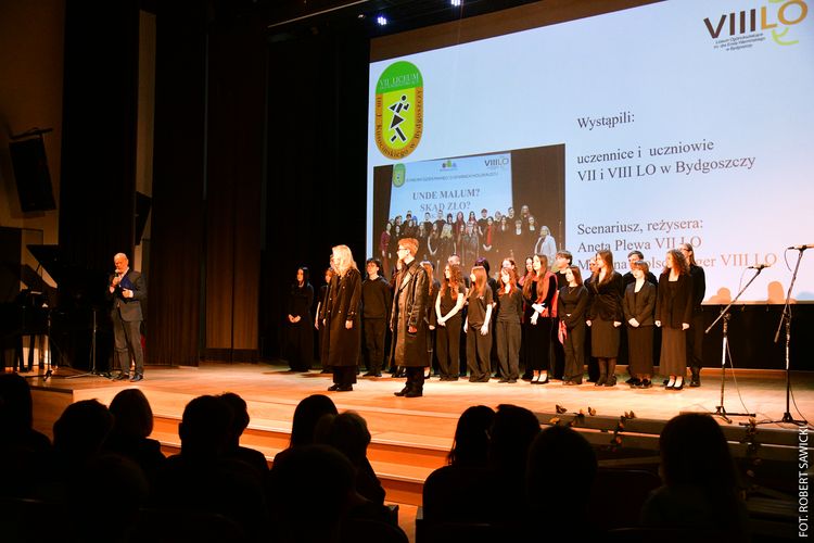 - Ten piękny spektakl przypomniał nam o złu, które ciągle na świecie jest, o wojnach, ludobójstwie, ale również o obojętności. To właśnie z niej bierze się zło. Myślę, że spektakl wszystkich obecnych na sali uczennice i uczniów wprowadził w stan zadumy i zastanowienia się na swoim własnym życiem. Apel który usłyszeliśmy ze sceny – co ja takiego robię, aby zło nie szerzyło się na świecie? Czy swoim słowem, milczeniem, albo czasami lajkiem, udostępnieniem czegoś w sieci nie jestem początkiem zła? To było bardzo pouczające – mówiła zastępczyni prezydenta Bydgoszczy Iwona Waszkiewicz.