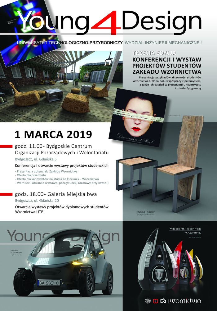 Wystawa projektów dyplomowych odbywa się w ramach III edycji Young4Design, czyli konferencji i wystaw, które są pokazem kreatywności i możliwości studentów oraz absolwentów Wzornictwa bydgoskiej uczelni.