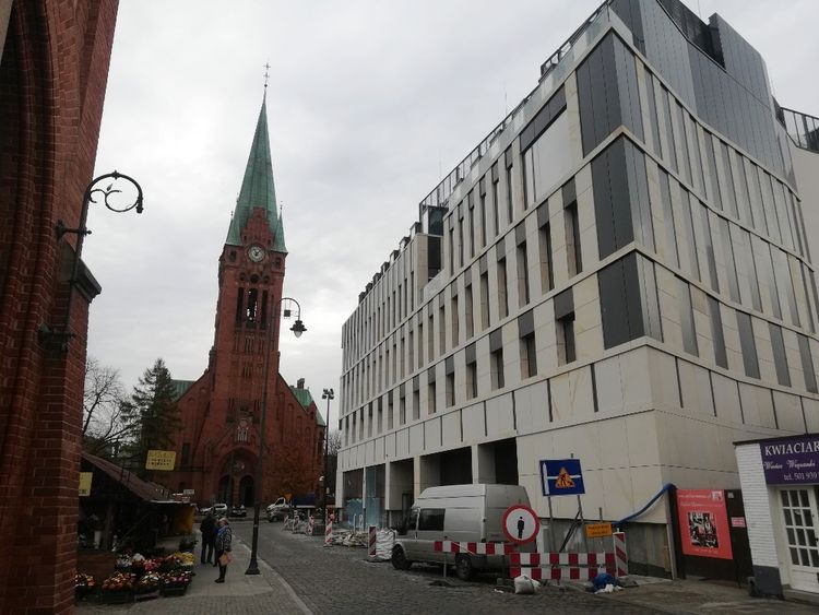 Remontowany jest też prawie 100-letni budynek handlowy na rogu ul. Podwale i Magdzińskiego. Wymieniono tam pokrycie dachowe i odnowiono elewację, utrzymaną w renesansowym stylu. W budynku przez wiele lat mieściła się salon zakładów rowerowych „Romet”. Następnie wykorzystywany był na cele gastronomii. Po remoncie ma funkcjonować w nim restauracja.