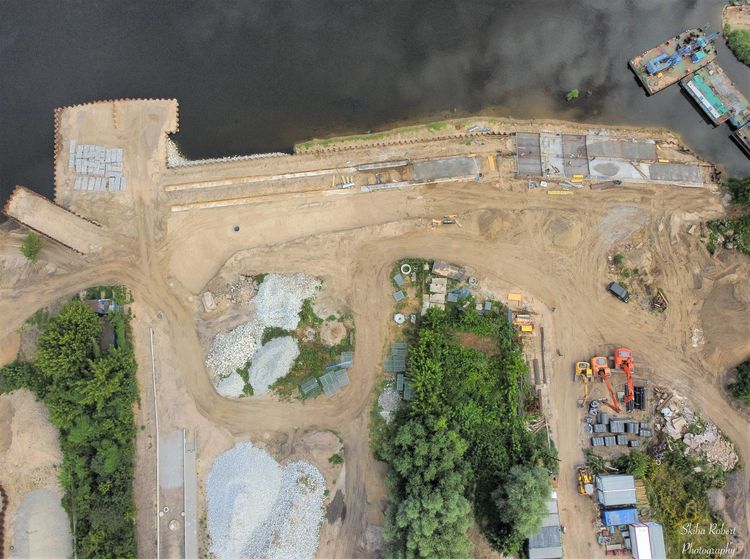 Coraz bardziej zaawansowane prace prowadzone są też przy nabrzeżu Wisły. Umocnione zostało ono szczelnymi ściankami. Przygotowana została też konstrukcja slipu, który umożliwi docelowo wodowanie małych jednostek pływających. Do nabrzeża prowadzić będzie rozbudowana ul. A. Frycza-Modrzewskiego. Będzie ona wyposażona w chodniki. Część z nich została już ułożona. Na jezdni ułożona zostanie kamienna kostka. Prace trwają również na sąsiednich ulicach Zakładowej, Rybaki, Filomatów i Promenada. Przy nabrzeżu wiślanym zaplanowano między innymi budowę: boiska, toru do jazdy wyczynowej rowerem, miejsc wypoczynku, placu zabaw i ścianek do wspinaczki.