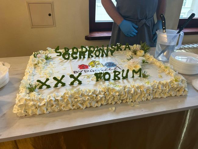 Nie zabrakło też jubileuszowej niespodzianki w postaci pysznego tortu oraz upominków dla każdego uczestnika i nauczyciela.