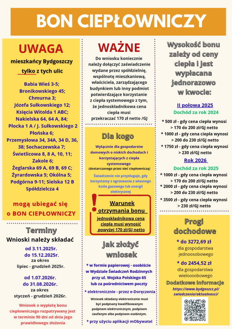 Mieszkańcy Bydgoszczy wyłącznie tych ulic mogą ubiegać się o bon ciepłowniczy: