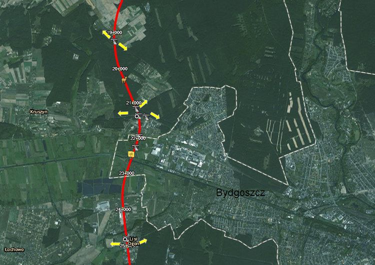 Mapa zachodniego odcinka od węzła Białe Błota do węzła Tryszczyn jest dostępna TUTAJ