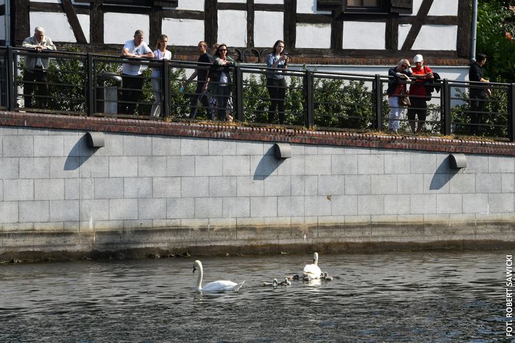 Oczywiście punktem kulminacyjnym pierwszego dnia Steru była Parada jednostek pływających. Wzięły w niej udział kajaki i te nieco większe łodzie. Jednym z uczestników parady był prezydent Bydgoszczy Rafał Bruski. Co ciekawie z wody paradzie przyglądały małe łabędzie - Pimpuś, Młynek, Brydzia, Belek, Śnieżynka, Bubu i Luna wspólne z rodzicami.