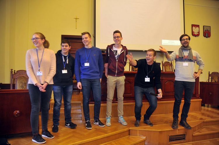 Goście otrzymali pakiety informacyjne i zestaw miejskich upominków. Po wizycie w ratuszu zorganizowali happening na Starym Rynku.