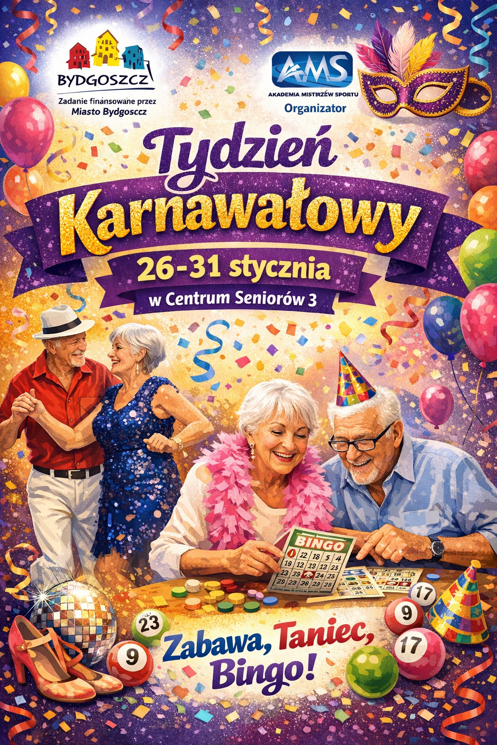 W programie przewidziano warsztaty taneczne, zabawę taneczną ze słodkim poczęstunkiem oraz grę w bingo z nagrodami i oprawą muzyczną. Wydarzenia skierowane są do seniorów i mają na celu aktywizację ruchową oraz integrację w karnawałowej...