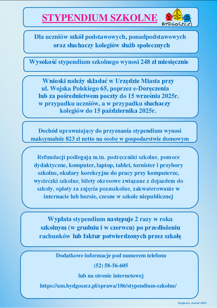 e-mail: wsr@um.bydgoszcz.pl tel. (52) 58 56 700, (52) 58 56 735 - pełny wykaz telefonów znajduje się na stronie www.bydgoszcz.pl/swiadczenia/o-nas/